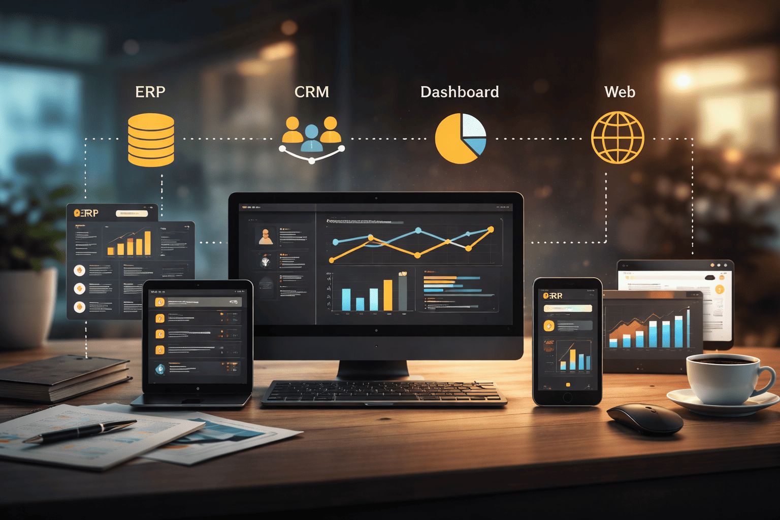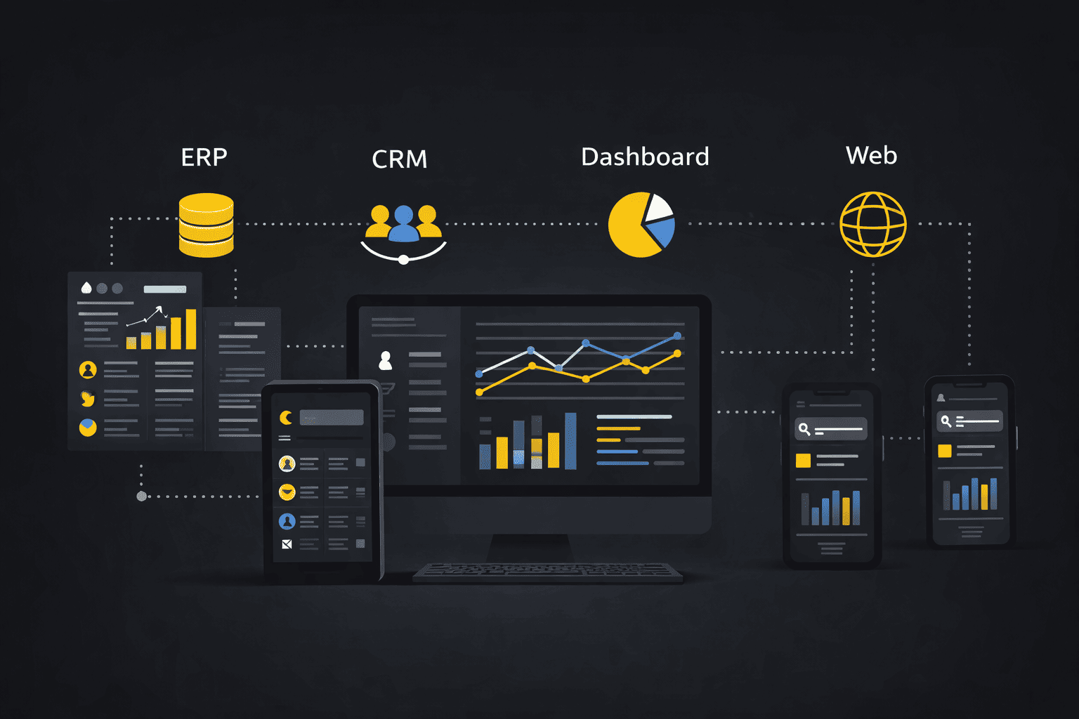 Pengembangan sistem internal dan aplikasi bisnis seperti ERP, CRM, workflow, dan dashboard operasional untuk mendukung proses kerja perusahaan.